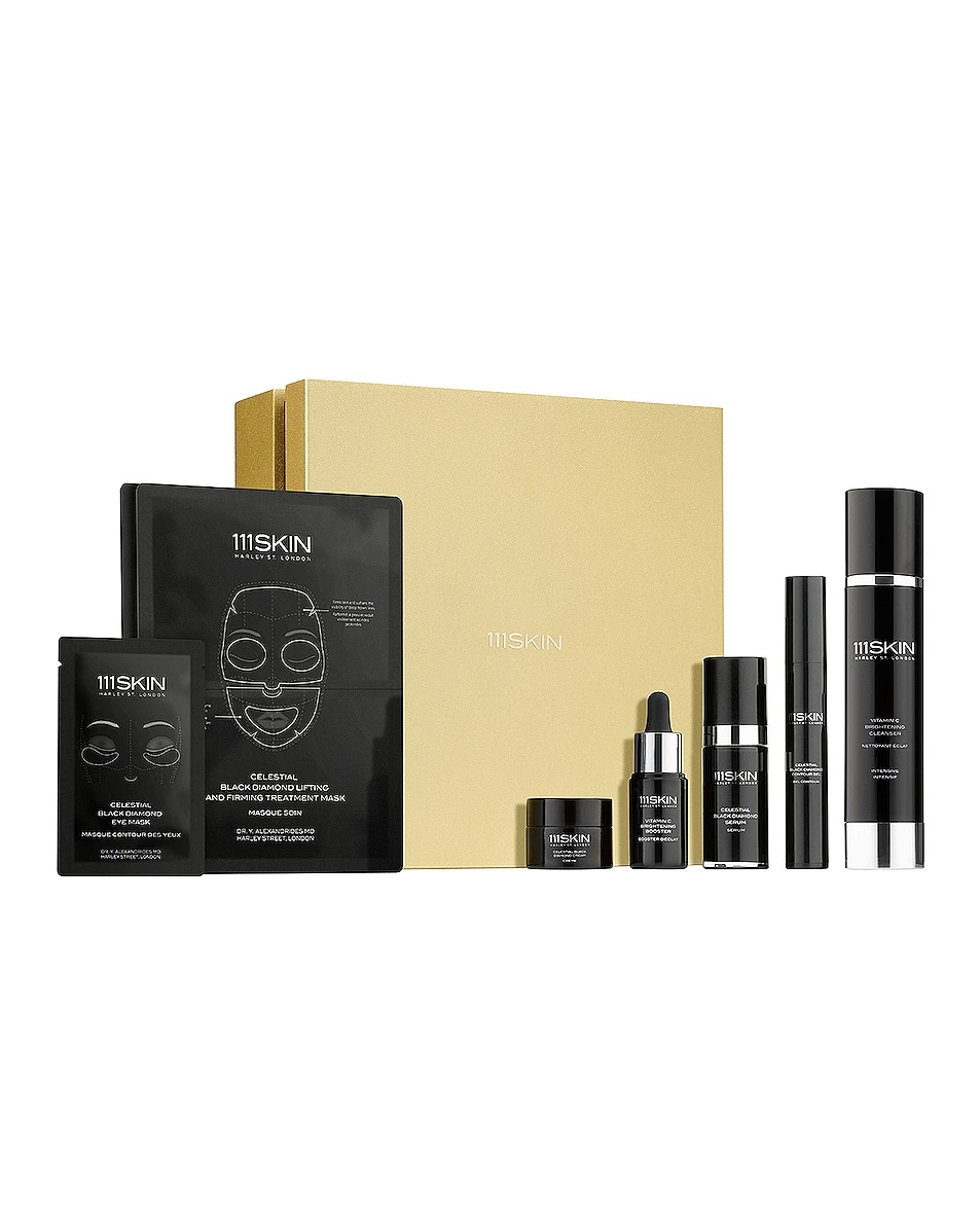 Includes: Vitamin C Brightening Cleanser (120 ml), Vitamin C Brightening Booster (20 ml), Celestial Black Diamond Contour Gel (15 ml), Celestial Black Diamond Serum (30 ml), Celestial Black Diamond Eye Mask (6 ml), Celestial Black Diamond Cream Deluxe (15 ml), Celestial Black Diamond Lifting and Firming Treatment Mask (74 ml)