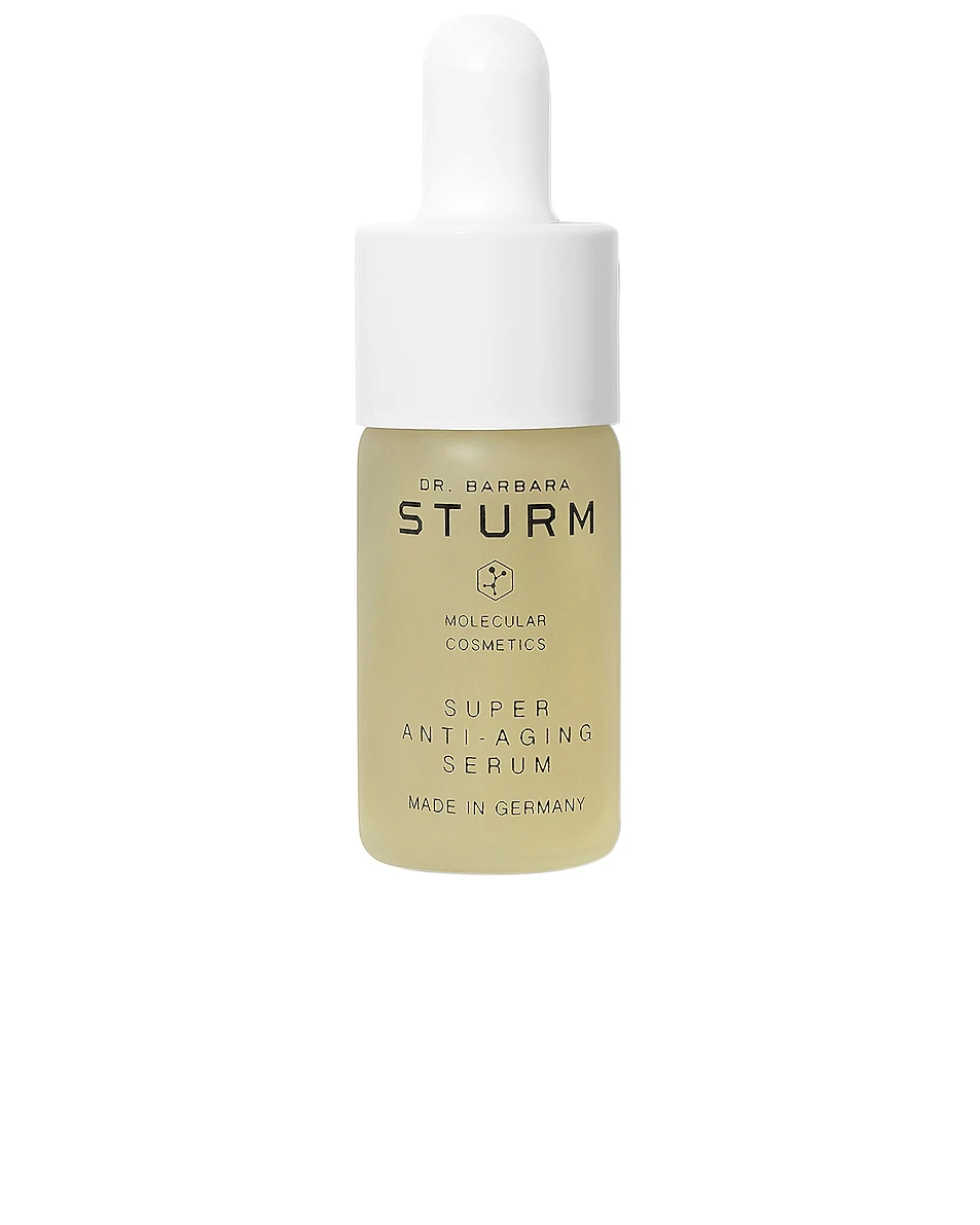Dr. Barbara Sturm’s Mini Super Anti-Aging Serum is a powerful serum with active antioxidants that nurture the skin while visibly reducing the appearance of fine lines and wrinkles. It contains extracts of Purslane and Skullcap that support the skin’s rejuvenating qualities, and also replaces the skin’s moisture reservoirs using a formulation of both long- and short-chain hyaluronic acid, resulting in a visibly firmer, more youthful, and clearer complexion.