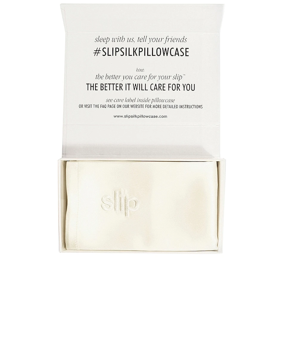 - slip Pure Silk Pillowcase is made using slipsilk, a patented fabric that has been developed and refined over the course of ten years to provide the ultimate combination of shine, thickness, softness and durability. Silk fibers are significantly less absorbent than many other fibers, meaning they help your skin’s moisture and face and hair products stay where they belong – on your face and hair. slipsilk helps to reduce friction as well, allowing skin and hair to glide along your pillow and evade the damaging effects of pulling, tangling and creasing.